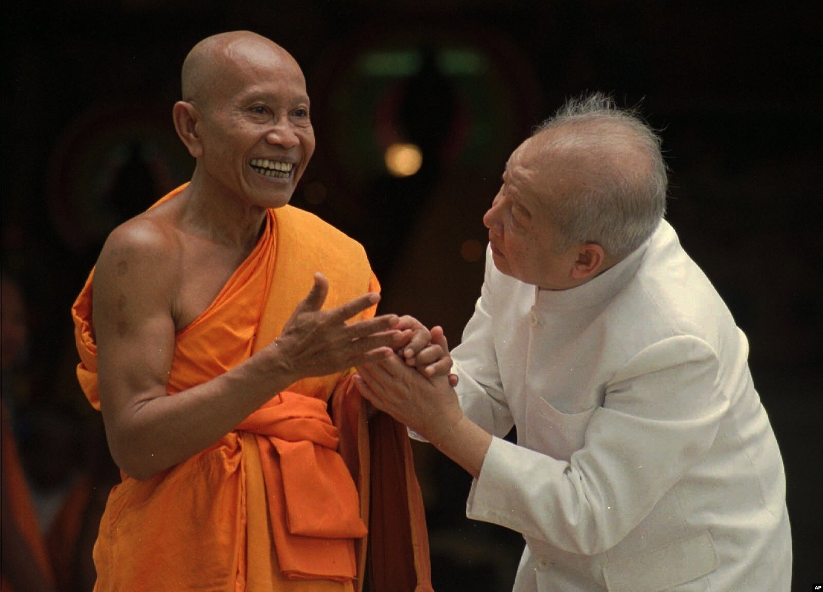 Thời sinh tiền, vua Sihanouk đã hợp tác với chế độ Khmer Đỏ khát máu sau khi ông bị lật đổ khỏi ngai vàng hồi năm 1970, nhưng sau đó ông lại bị chế độ Khmer Đỏ bỏ tù. Cuối cùng, ông Sihanouk đã phải chạy sang Trung Quốc lánh nạn.