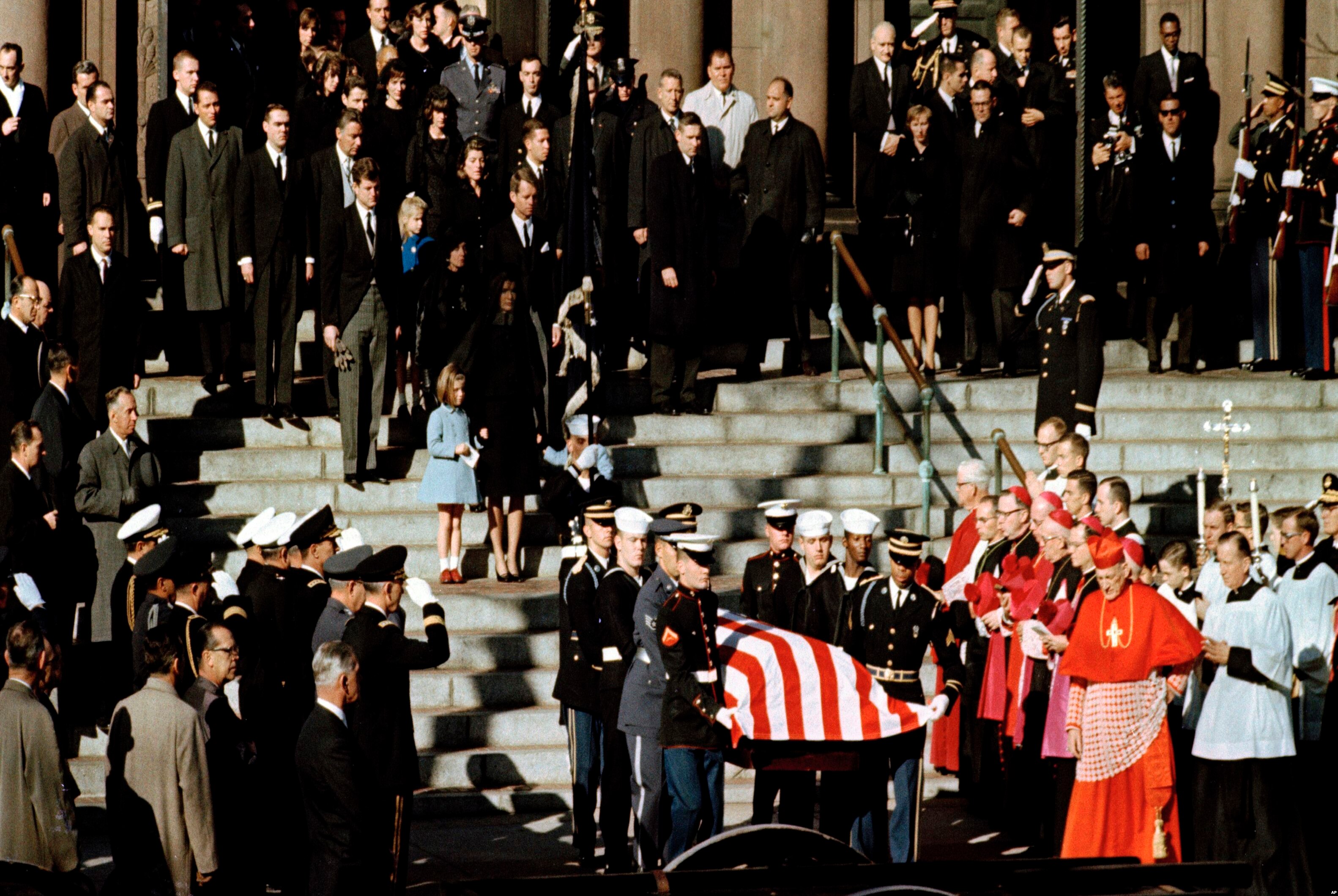 Đại diện của tất cả các quân chủng khiêng linh cữu Tổng thống John F. Kennedy ra khỏi Nhà thờ St Matthew tại Washington, ngày 25/11/1963.