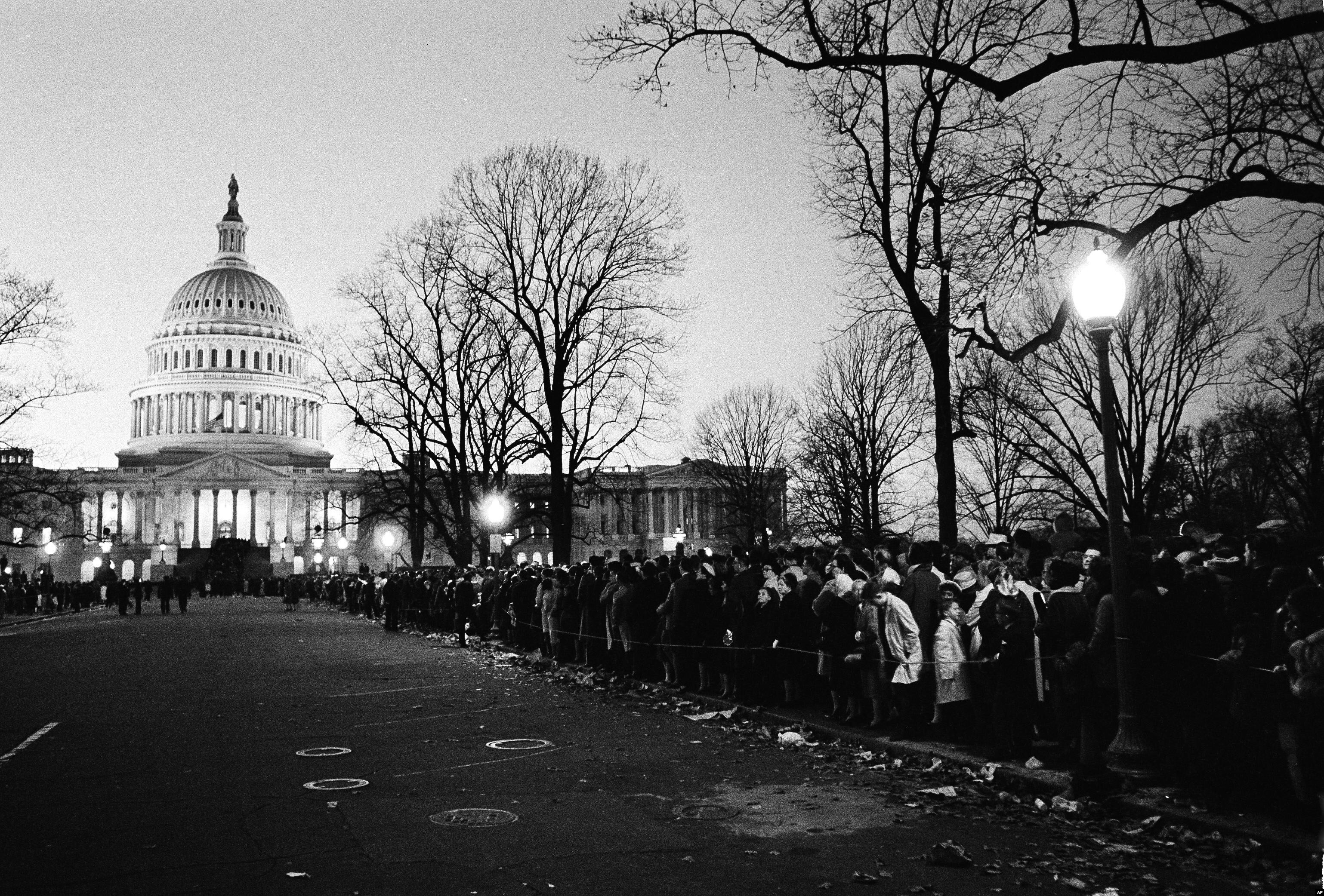 Dân chúng đứng hàng dài dọc theo đường trong đêm chờ vào viếng linh cữu Tổng thống Kennedy, 24/11/1963
