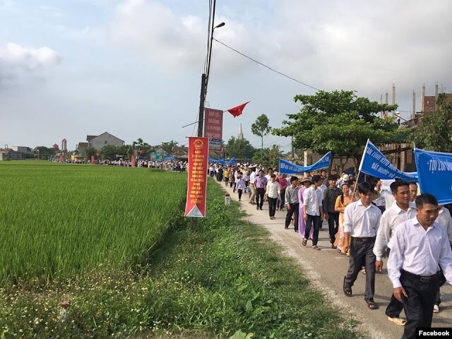 Hàng trăm bà con giáo dân xứ Song Ngọc và ở xã Hợp Thành tại tỉnh Nghệ An đã tuần hành, mang theo các biểu ngữ như “Cá cần nước sạch, dân cần minh bạch”, “Vì sao cá chết” hay “Tôi không muốn chết như cá”.