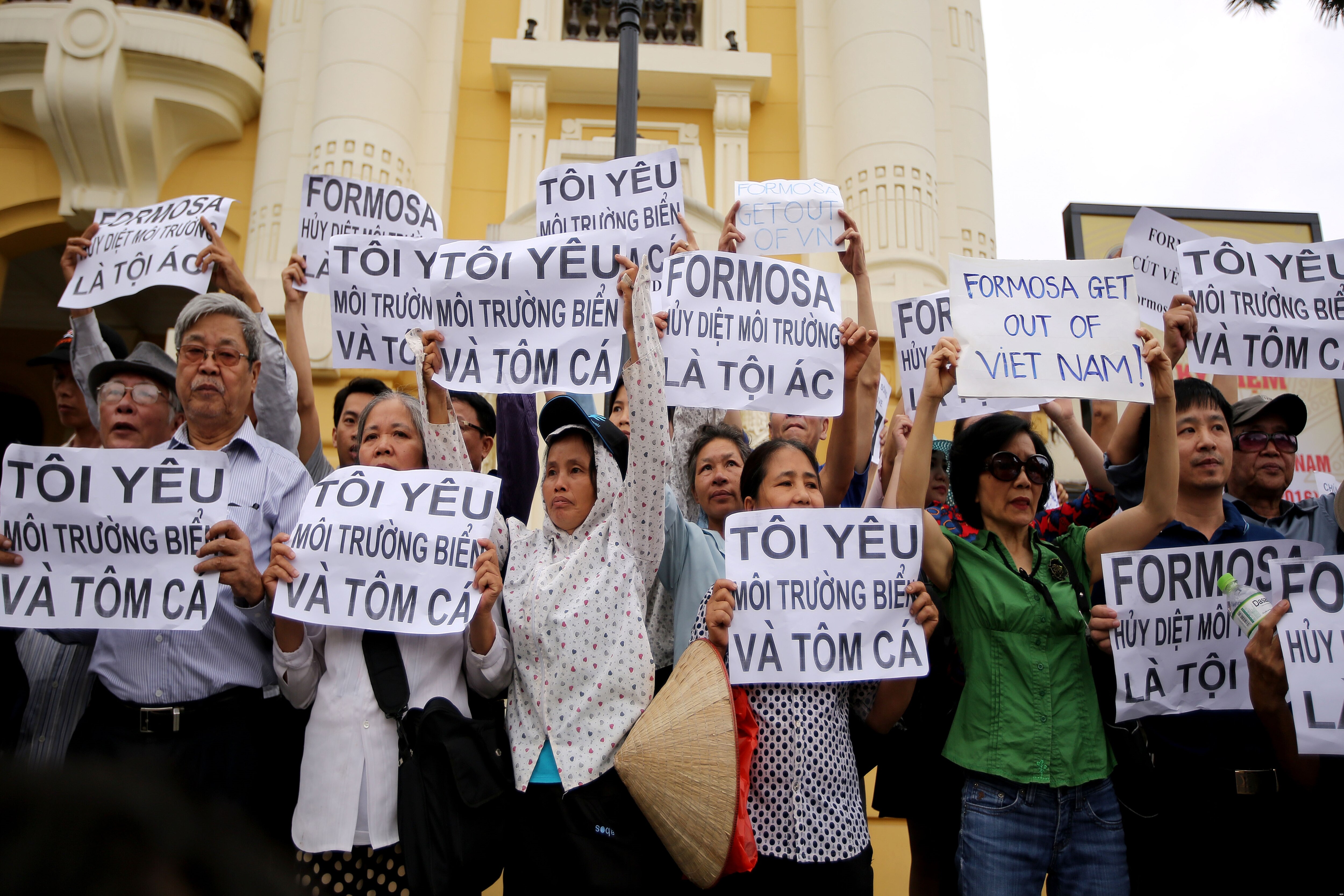 - Người biểu tình xuống đường tại Hà Nội với biểu ngữ phản đối công ty Formosa, đòi trả lại Vũng áng cho người dân trong cuộc biểu tình tố cáo công ty Formosa hủy hoại môi trường, gây ra vụ cá chết hàng loạt tại tỉnh miền Trung Việt Nam, ngày 1/5/2016.