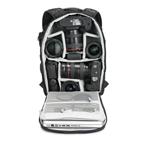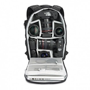 Thương hiệu Lowepro chủ yếu chỉ sản xuất những dòng ba lô máy ảnh DSLR phục vụ cho nhu cầu nhiếp ảnh chuyên nghiệp của các phượt thủ, tuy nhiên không vì thế mà thương hiệu lại bỏ qua mảnh đất ba lô laptop đầy màu mỡ. Sản phẩm ProTactic 350 AW với khoang chứa laptop rộng rãi với công năng chống shock bảo vệ cho máy ảnh lẫn laptop, mang lại cho bạn cảm giác yên tâm khi đi xa. Khoang chính của ba lô được chia tách bởi những miếng pad dán, chứa lense máy DSLR các kích cỡ và các phụ kiện điện tử. Có các ngăn phụ chứa đồ ở hai bên hông và trên đầu ba lô. Phía sau có những chi tiết chuyên dụng cho nhiếp ảnh như chi tiết gắn tripod và ngăn nhỏ lưu trữ những vật thường sử dụng.