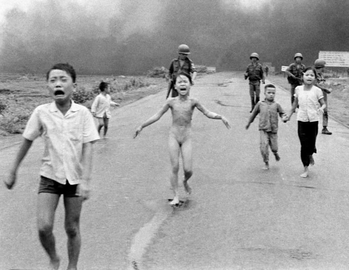 De Vietnamoorlog is door de jaren heen onlosmakelijk verbonden geraakt met het schrijnende beeld van het naakte, rennende meisje, bij wie de napalm op haar huid plakt. ,,Te heet, te heet!’’ schreeuwt Kim Phuc. Dat weten we uit videobeelden, want zelf herinnert Kim Phuc het zich niet. Je hoort het natuurlijk ook niet op de foto van Huynh Cong ‘Nick’ Ut, een oorlogsfotograaf van Associated Press (AP), maar je ziet wel - en vóélt zelfs bijna - de ontreddering en de pijn van het meisje. Ut kreeg de Pulitzerprijs voor zijn foto, die wereldwijd de voorpagina's van de kranten haalde. De foto kreeg de titel The terror of war (oorlogsterreur) mee, maar is bekender als Napalm girl (napalmmeisje).