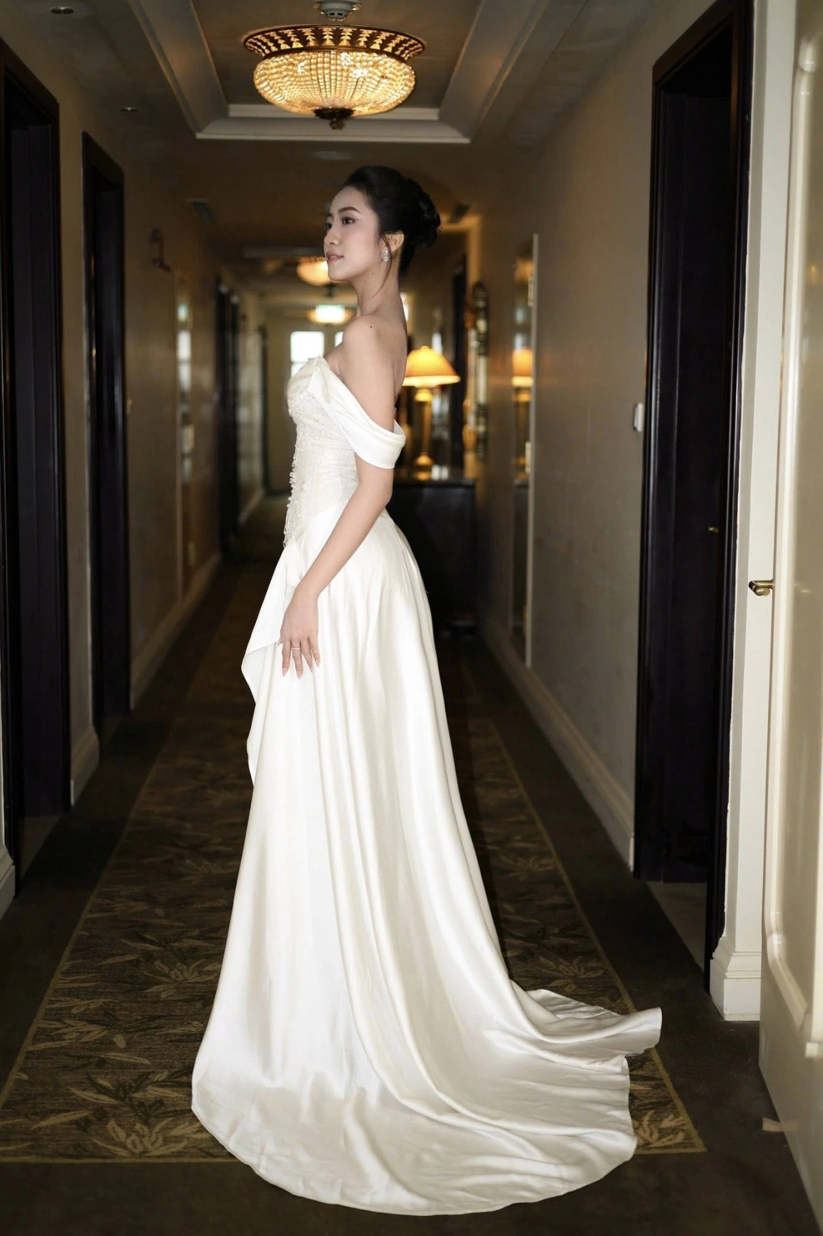 Khi búi tóc cao, gương mặt của hoa hậu trở nên sắc nét, tạo diện mạo mới mẻ.